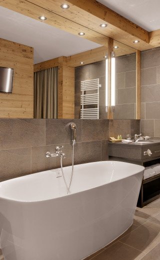 Situated between the 1st and 5th floors of the Main Building, our suites are north/south facing. Our south-facing suites have large balconies with mountain views; our north-facing suites have city views. All rooms are decorated with old oak wood panels and contemporary furniture. Their design is unique. All rooms are fitted with a walk-in closet, a separate living area with dining table, nespresso coffee machine and a sofa bed to accommodate max. two small children. Bathrooms have a bathtub and separate shower. These rooms can be reached by the main elevator or staircase.