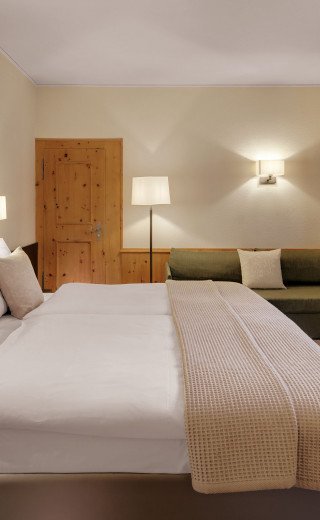 Enjoying views over the Guggerbach or the Jakobshorn, some of our standard rooms in the Villa have private balconies. All the rooms are provided with cotton linen, an extensive range of pillows and are quiet to ensure a peaceful night's sleep.